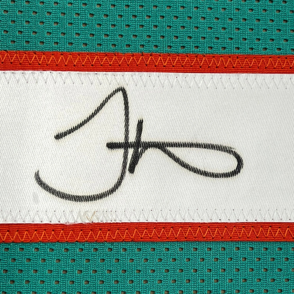 Framed Autographed/Signed Tyreek Hill 35x39 Miami Retro Teal Football Jersey JSA COA