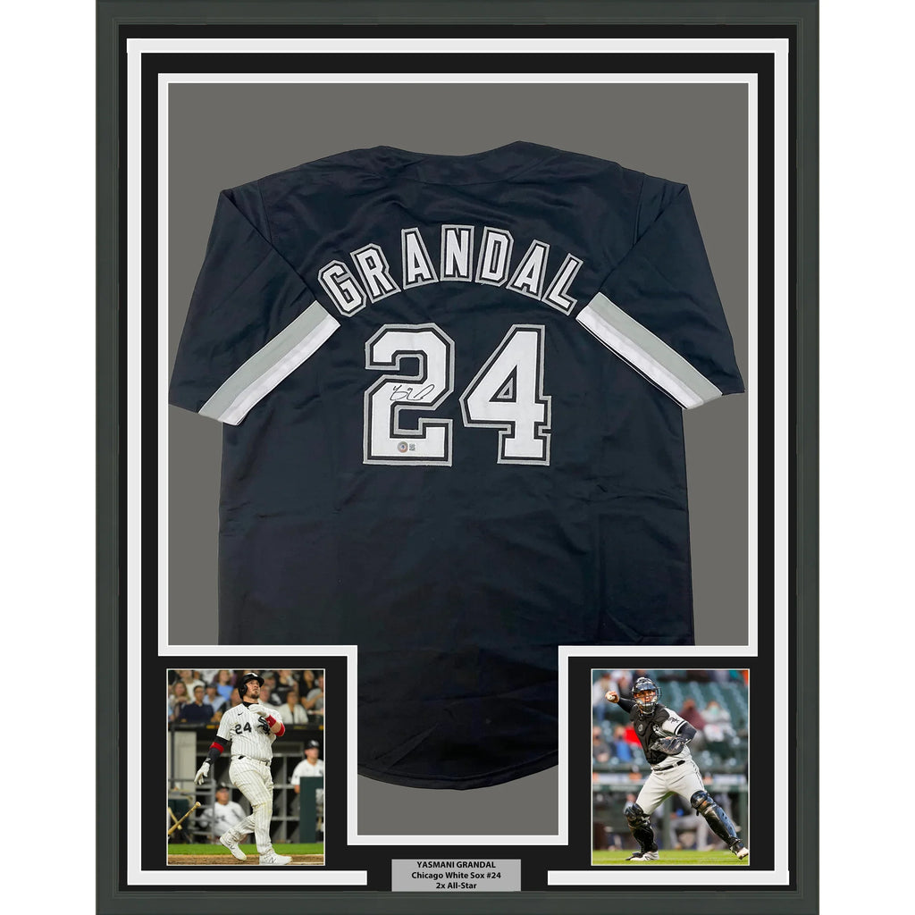 Framed Autographed/Signed Yasmani Grandal 35x39 Chicago Black Baseball Jersey Beckett BAS COA