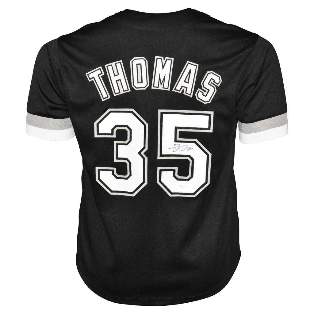 This Frank Thomas autographed custom jersey showcases the legendary player's signature and iconic jersey number 35. Certified by JSA, this is a must-have item for any true fan of the Chicago White Sox. Relive the magic of the Big Hurt's playing days and add this impressive piece to your collection now!