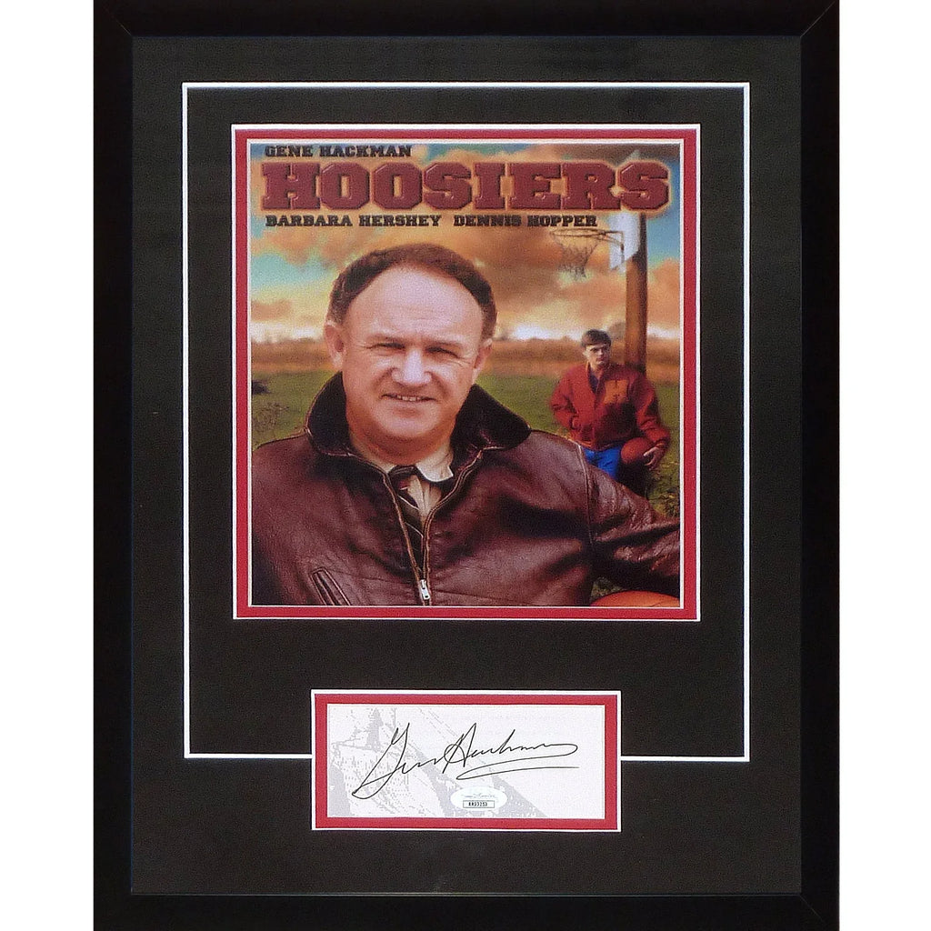 Own a piece of movie history with this Gene Hackman Autographed Hoosiers "Signature Series" Frame, certified by JSA. Relive the inspiring story and incredible moments from the film, signed by the legendary actor himself. A must-have for any movie memorabilia collector!