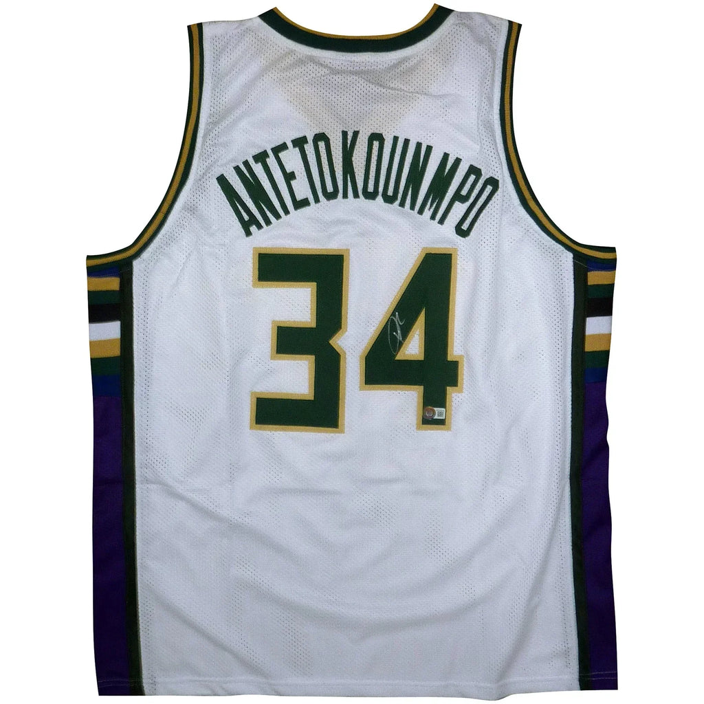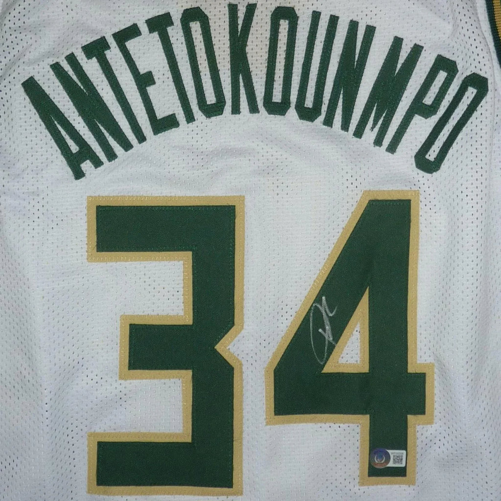 Elevate your collection with this Giannis Antetokounmpo autographed Milwaukee custom jersey. Certified by Beckett, this white #34 jersey showcases your passion for the game and love for the Bucks. Showcasing the MVP's signature, this jersey adds a touch of excitement and authenticity to any sports fan's collection.