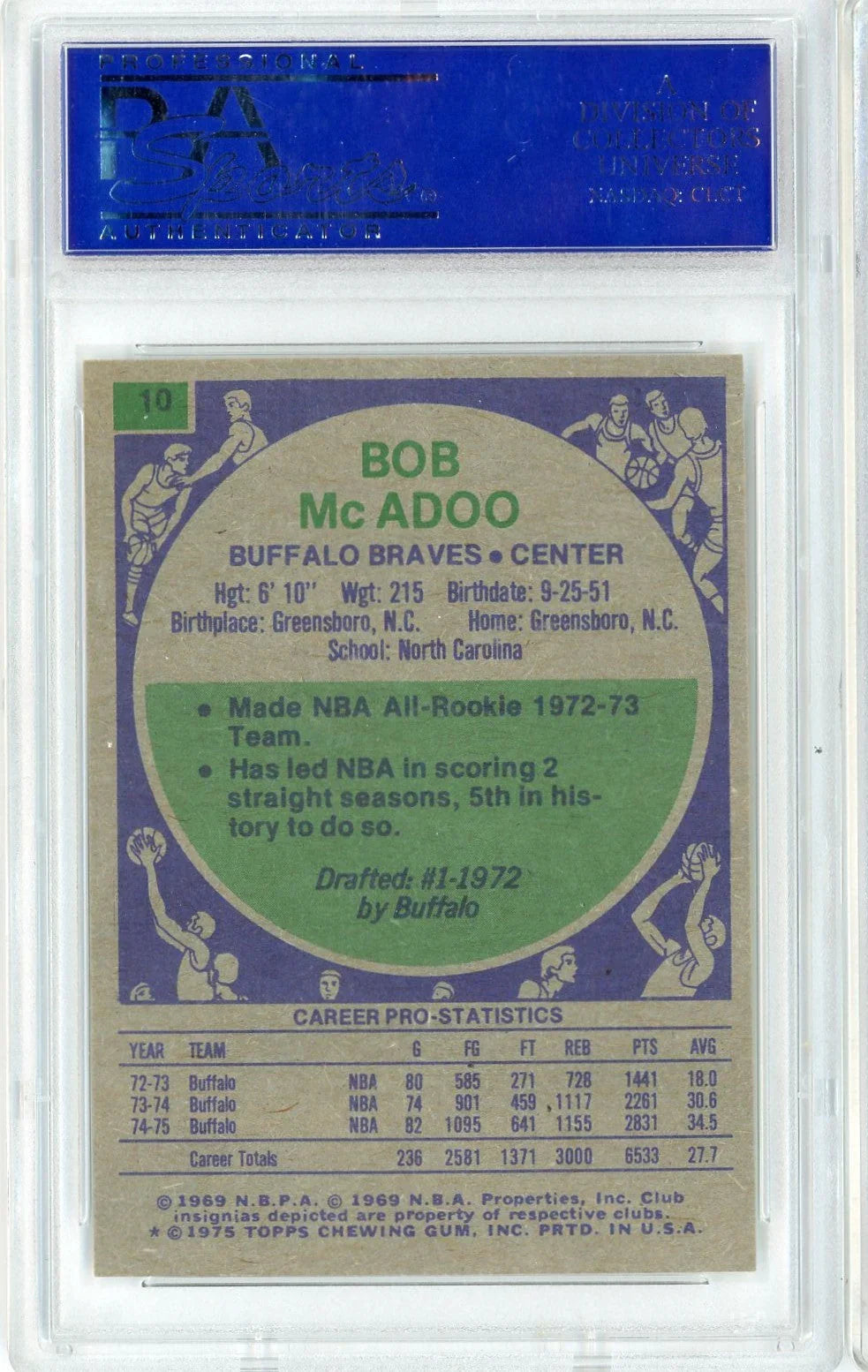 Graded 1975 Topps Bob McAdoo #10 Basketball Card PSA 8 NM-MT