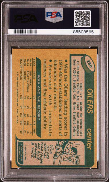 Graded 1980 Topps Wayne Gretzky #250 2nd Year Hockey Card PSA 6 EX-MT