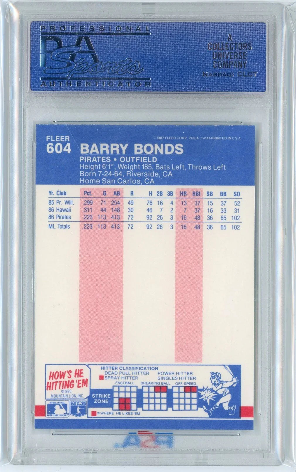 Graded 1987 Fleer Barry Bonds #604 Rookie RC Baseball Card PSA 8 NM-MT