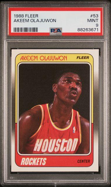 Graded 1988 Fleer Hakeem Akeem Olajuwon #53 Basketball Card PSA 9 Mint