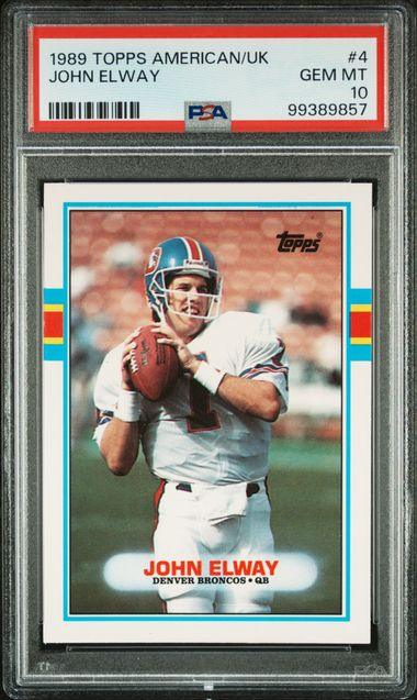 Graded 1989 Topps American/UK John Elway #4 Football Card PSA 10 Gem Mint