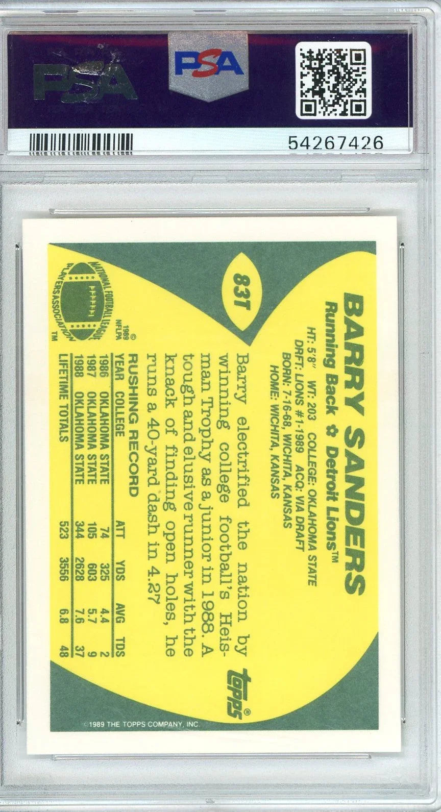 Graded 1989 Topps Traded Barry Sanders #83T Rookie RC Football Card PSA 9 Mint