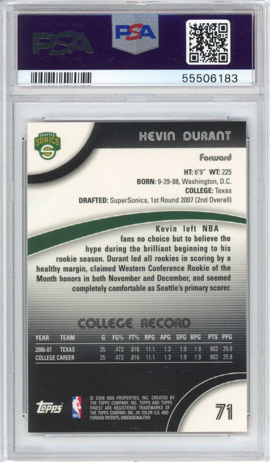 Graded 2007-08 Topps Finest Kevin Durant #71 Rookie RC Basketball Card PSA 10 Gem Mint