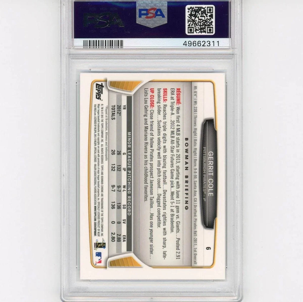 Graded 2013 Bowman Draft Picks & Prospects Chrome Gerrit Cole #6 Rookie RC Baseball Card PSA 10 Gem Mint