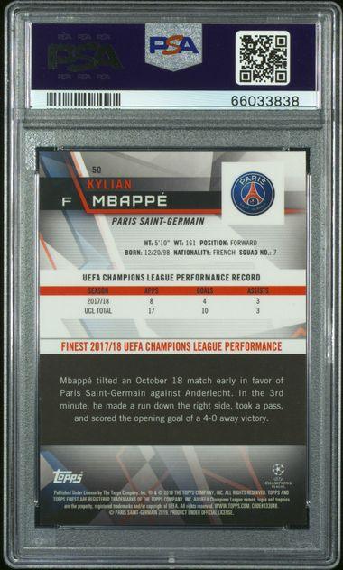 Graded 2018 Topps Finest UCL Kylian Mbappe #50 Green Refractor /99 Soccer Card PSA 10 Gem Mint