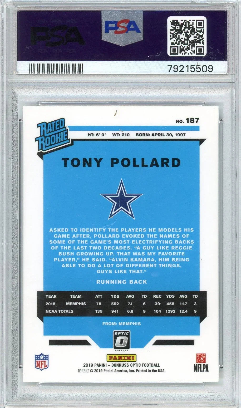 Graded 2019 Panini Donruss Optic Tony Pollard #187 Rookie RC Football Card PSA 10 Gem Mint