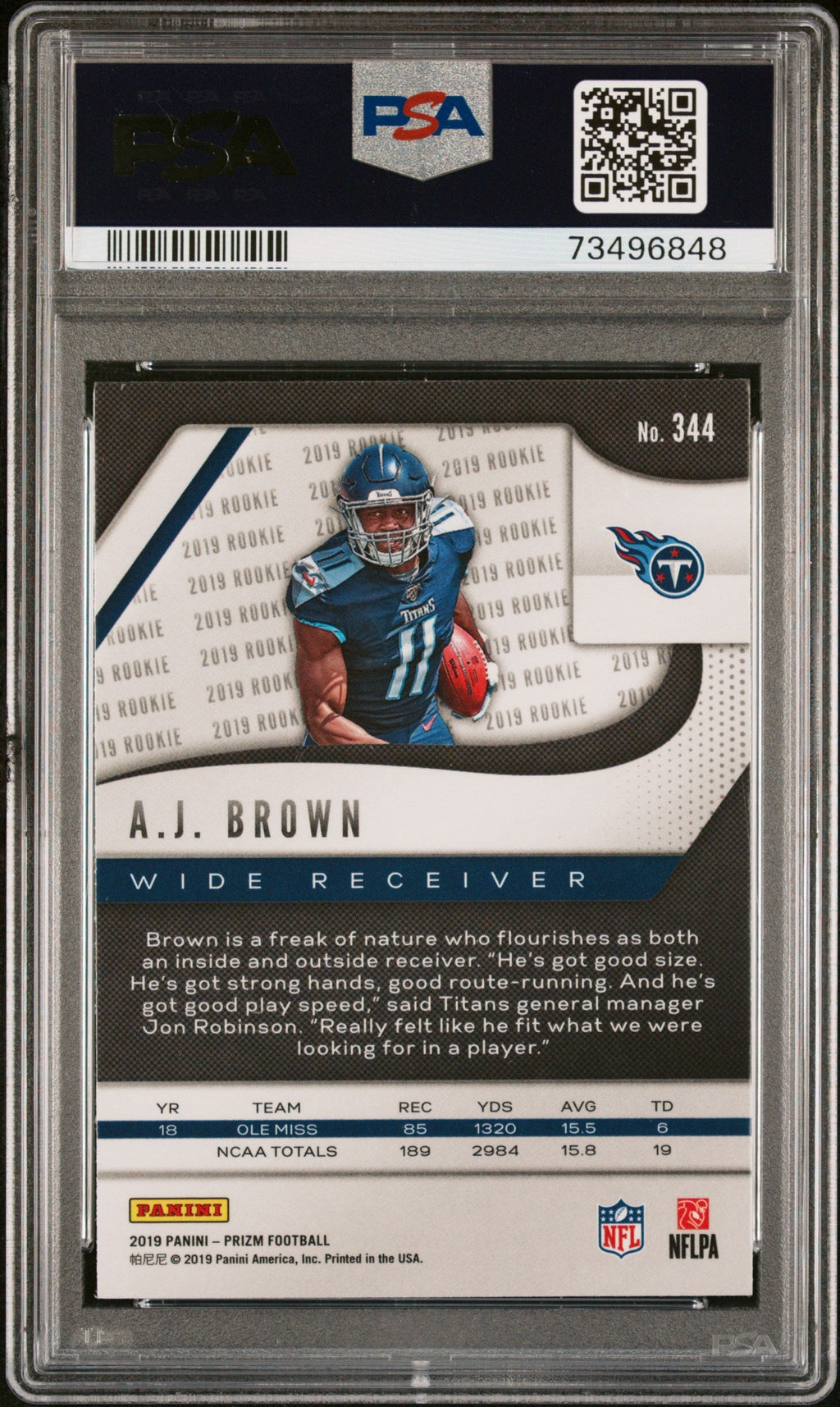 Graded 2019 Panini Prizm AJ Brown #344 Rookie RC Football Card PSA 9 Mint