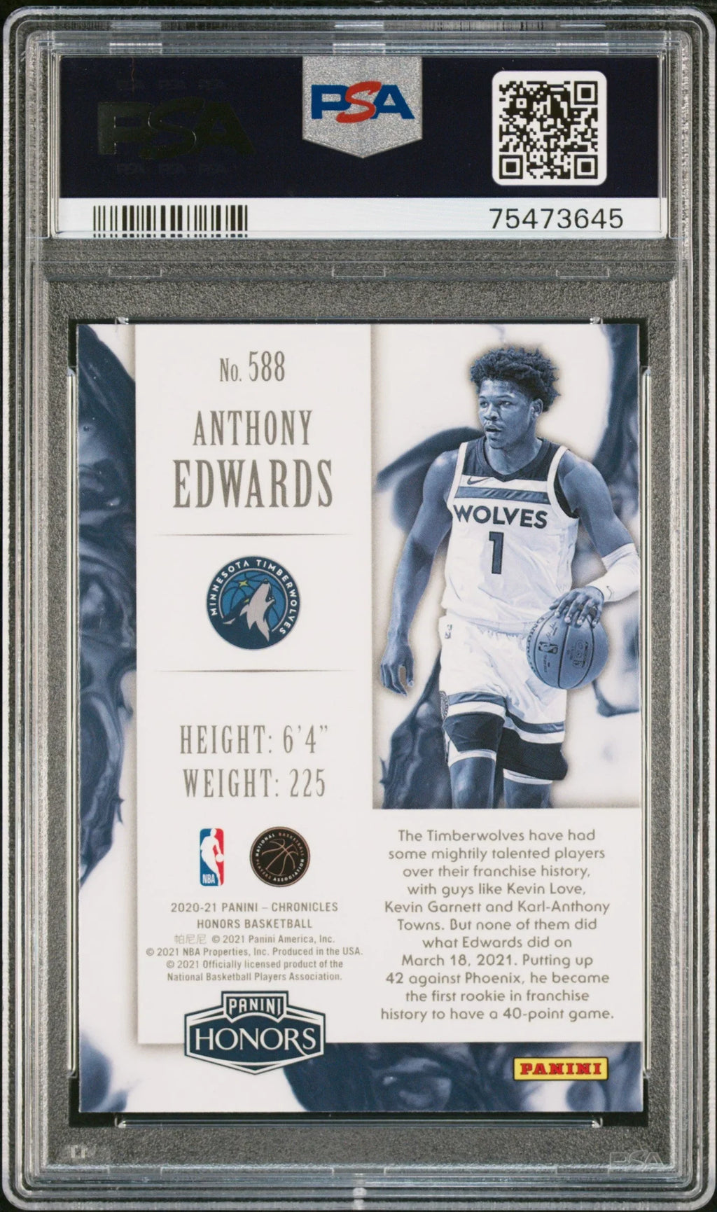 Graded 2020 Panini Chronicles Anthony Edwards #588 Rookie RC Basketball Card PSA 10 Gem Mint