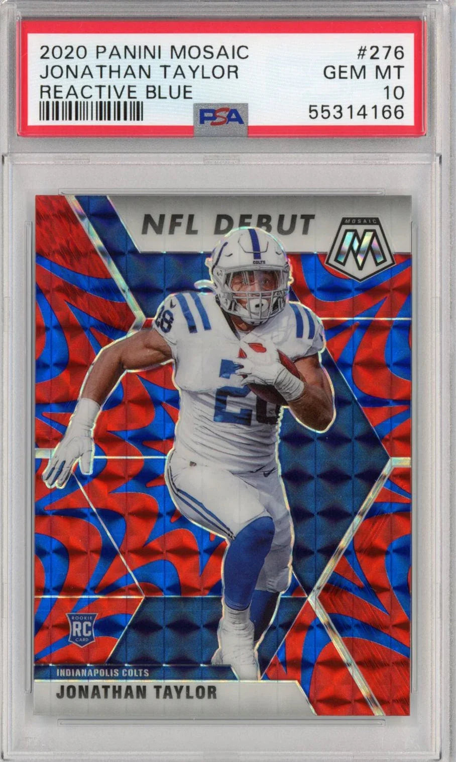 Graded 2020 Panini Mosaic Jonathan Taylor #276 Reactive Blue Rookie RC Football Card PSA 10 Gem Mint