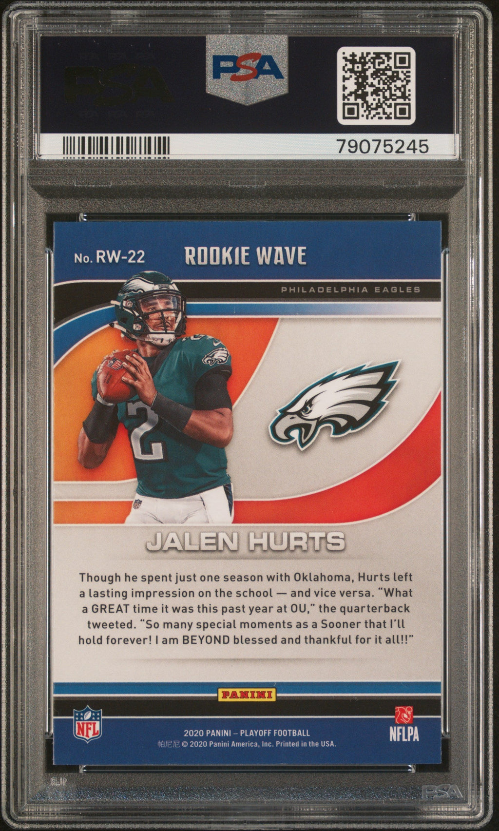 Graded 2020 Panini Playoff Jalen Hurts #RW22 Rookie Wave Rookie RC Football Card PSA 10 Gem Mint