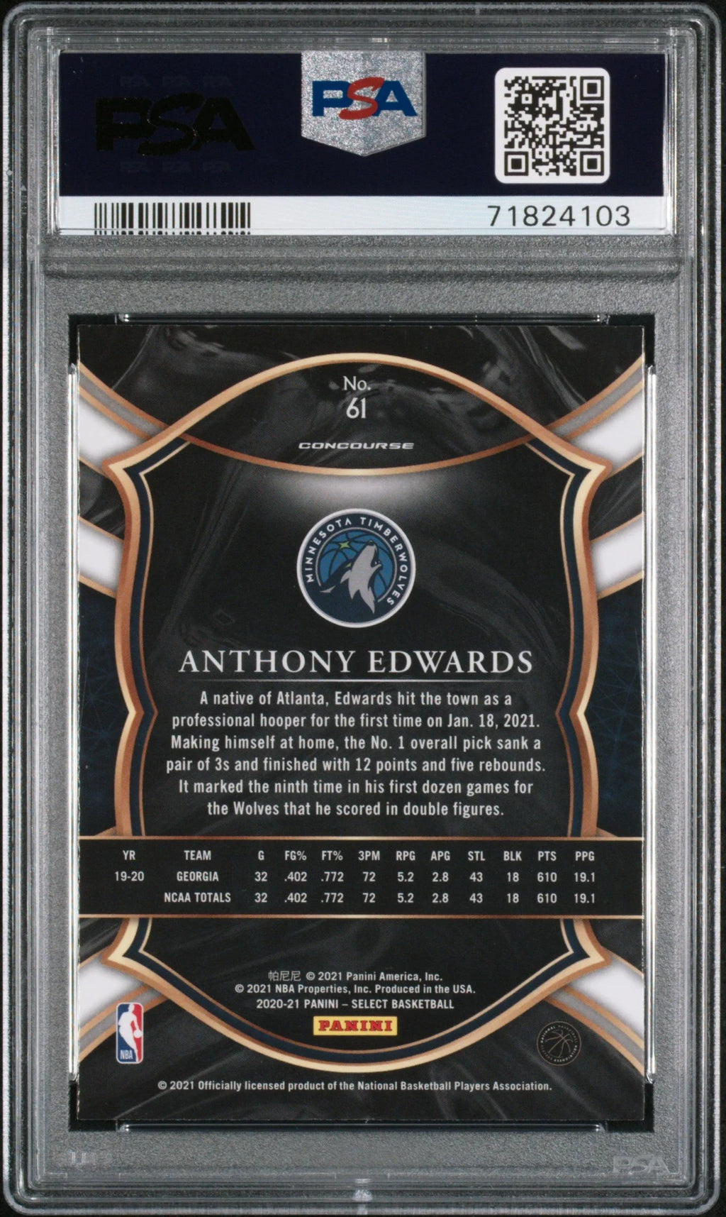 Graded 2020 Panini Select Anthony Edwards #61 Rookie RC Basketball Card PSA 10 Gem Mint