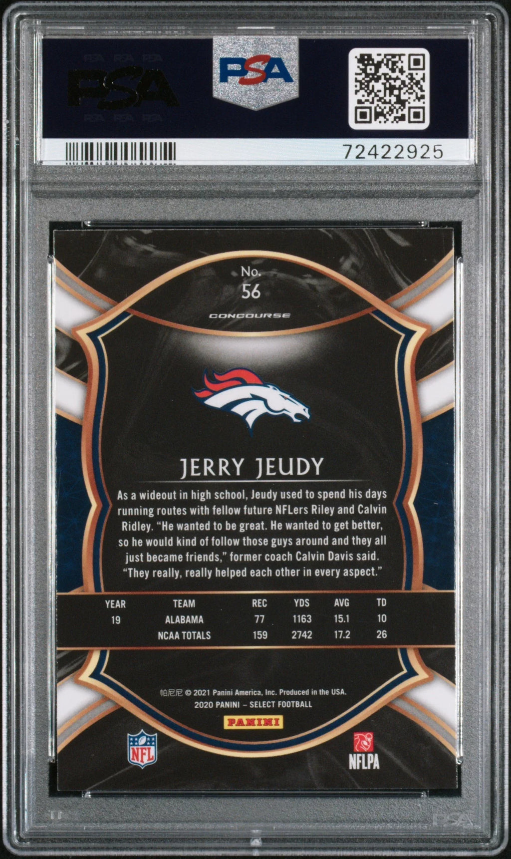 Graded 2020 Panini Select Jerry Jeudy #56 Rookie RC Football Card PSA 10 Gem Mint