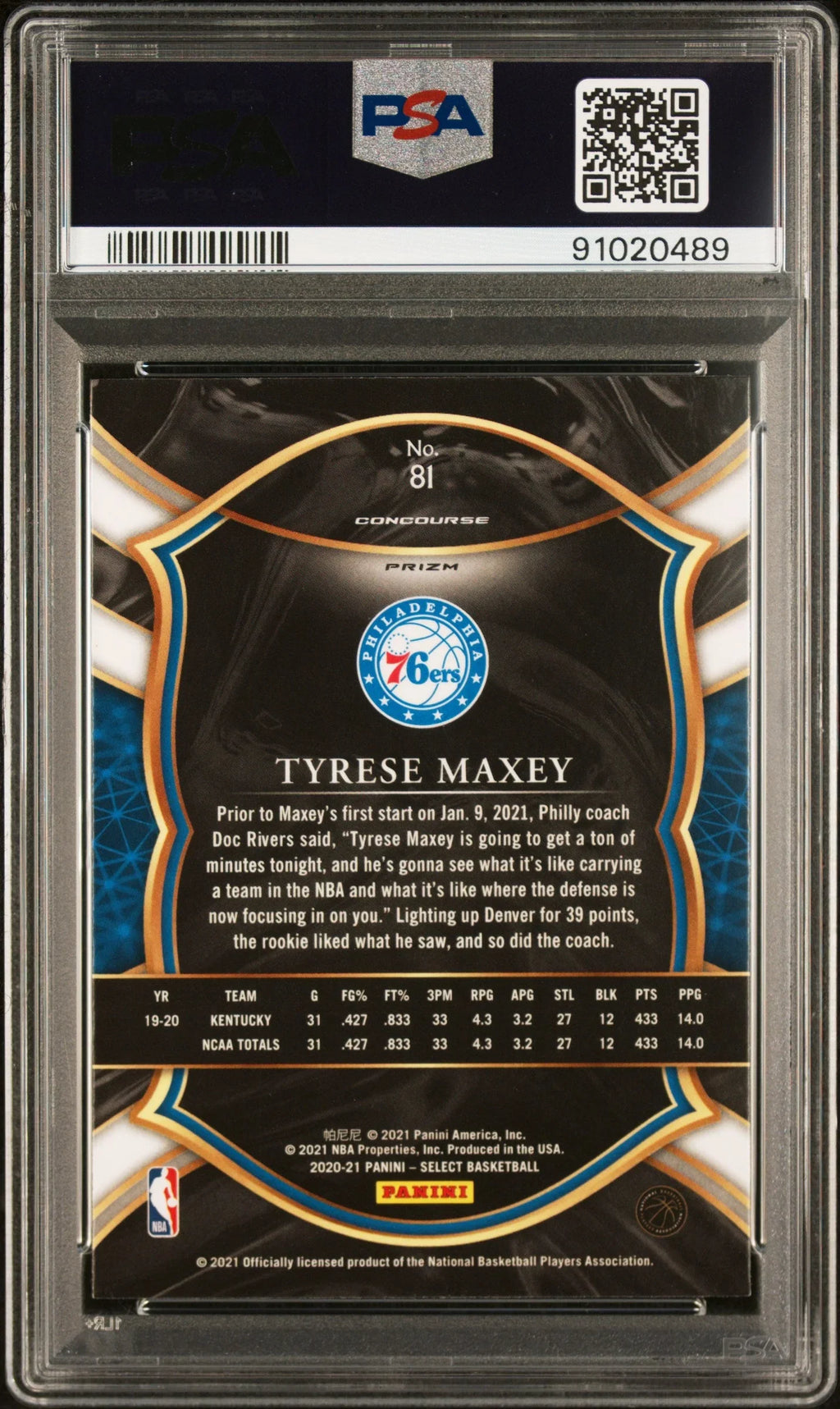 Graded 2020 Panini Select Tyrese Maxey #81 Silver Prizm Rookie RC Basketball Card PSA 10 Gem Mint