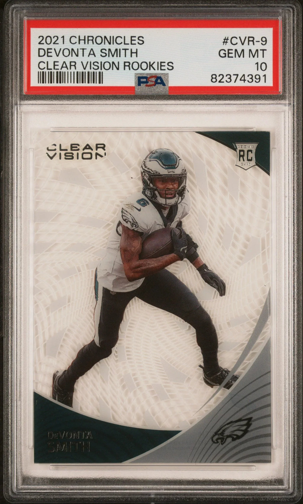 Graded 2021 Panini Chronicles DeVonta Smith #CVR9 Clear Vision Rookies Rookie RC Football Card PSA 10 Gem Mint
