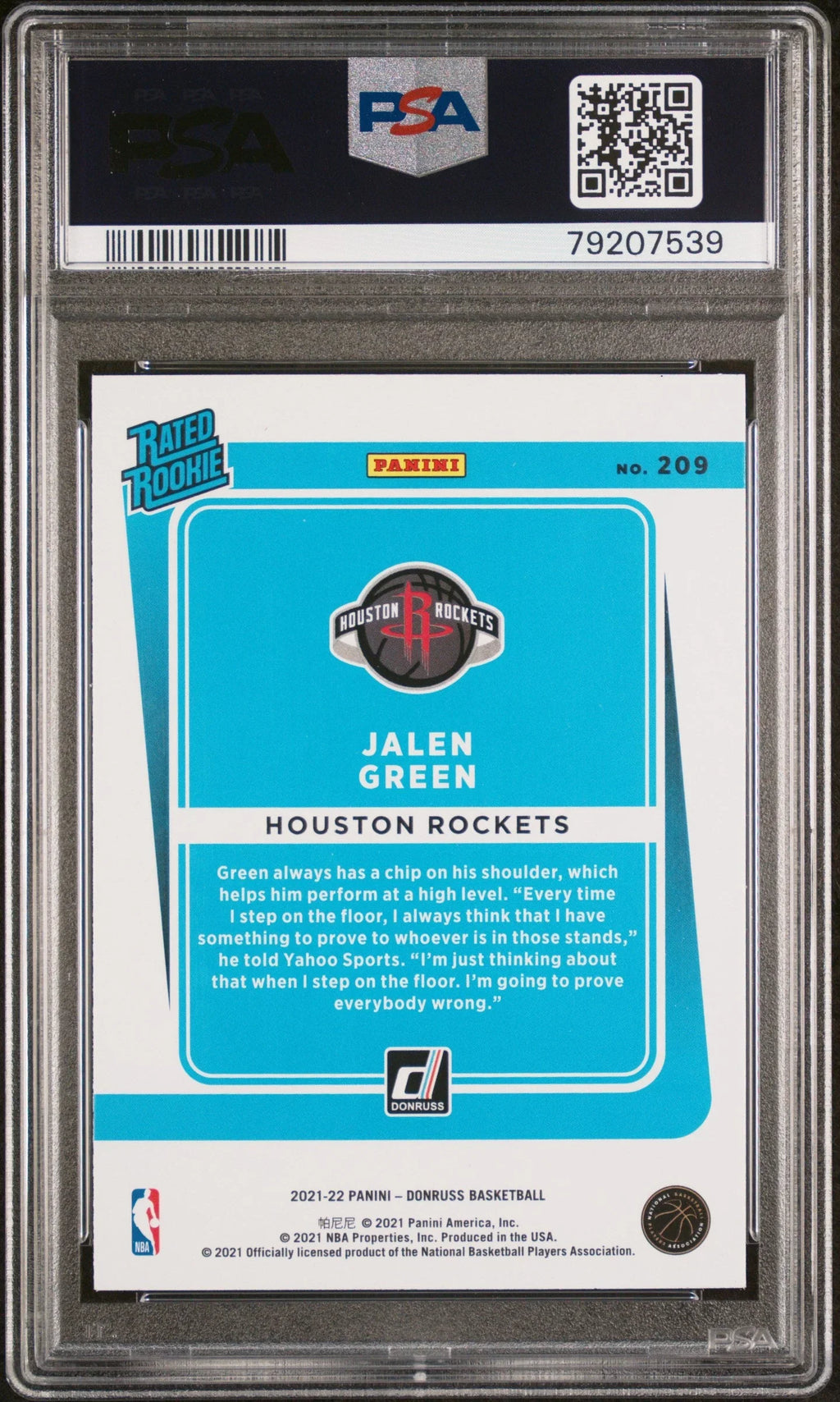 Graded 2021 Panini Donruss Jalen Green #209 Holo Orange Laser Rookie RC Basketball Card PSA 10 Gem Mint