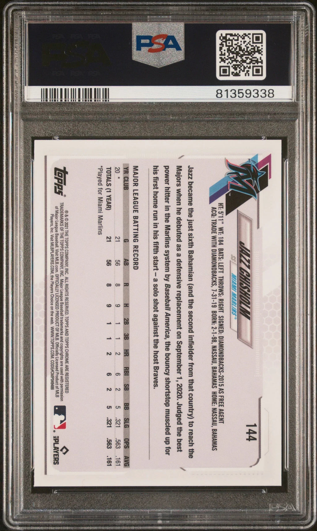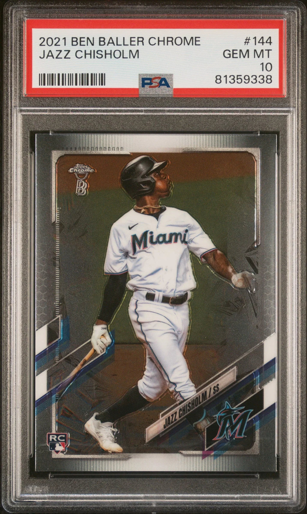 Graded 2021 Topps Ben Baller Chrome Jazz Chisholm #144 Rookie RC Baseball Card PSA 10 Gem Mint