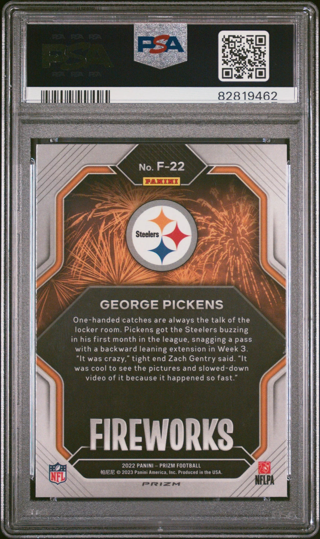 Graded 2022 Panini Prizm George Pickens #F22 Fireworks No Huddle Rookie RC Football Card PSA 10 Gem Mint