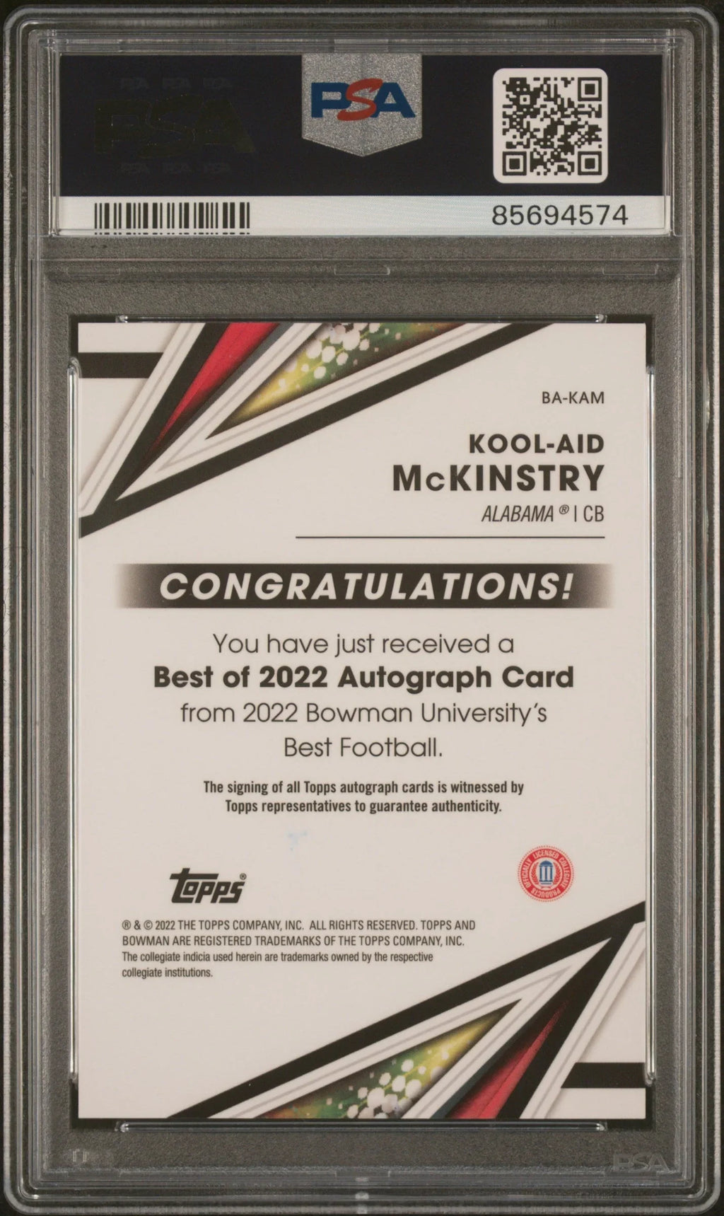 Graded 2022 Topps Bowman Best U Kool Aid McKinstry #BAKAM Best of '22 Autograph Rookie RC Football Card PSA 10 Gem Mint