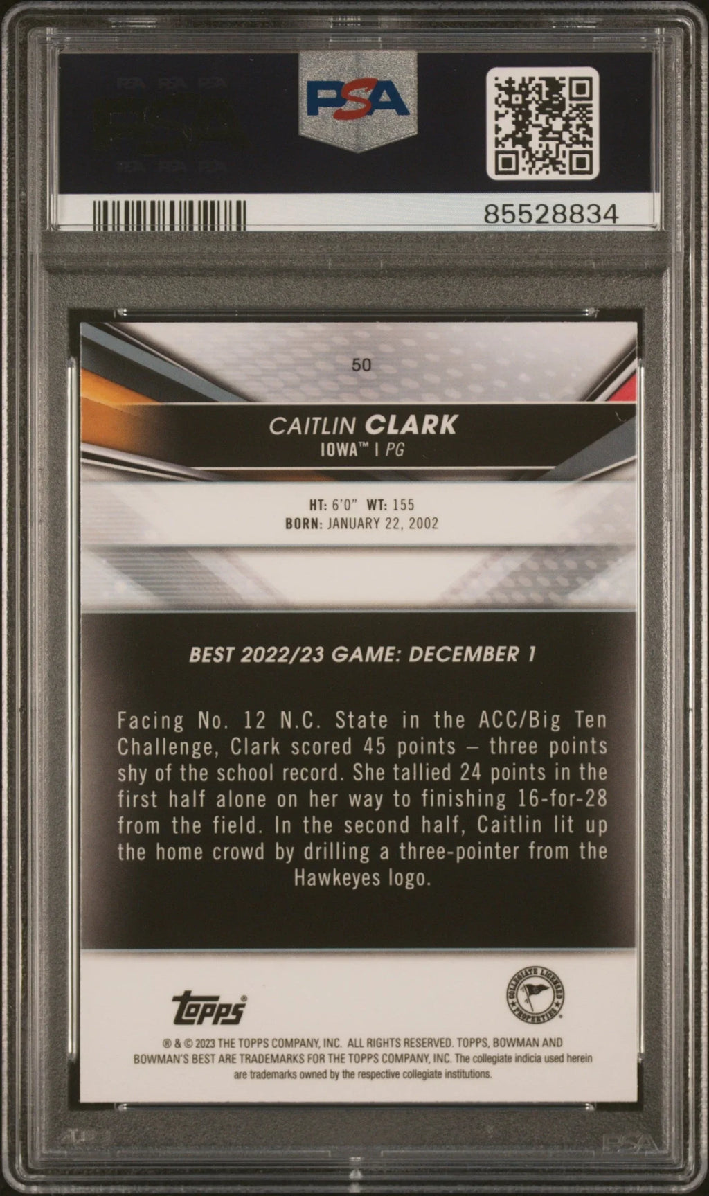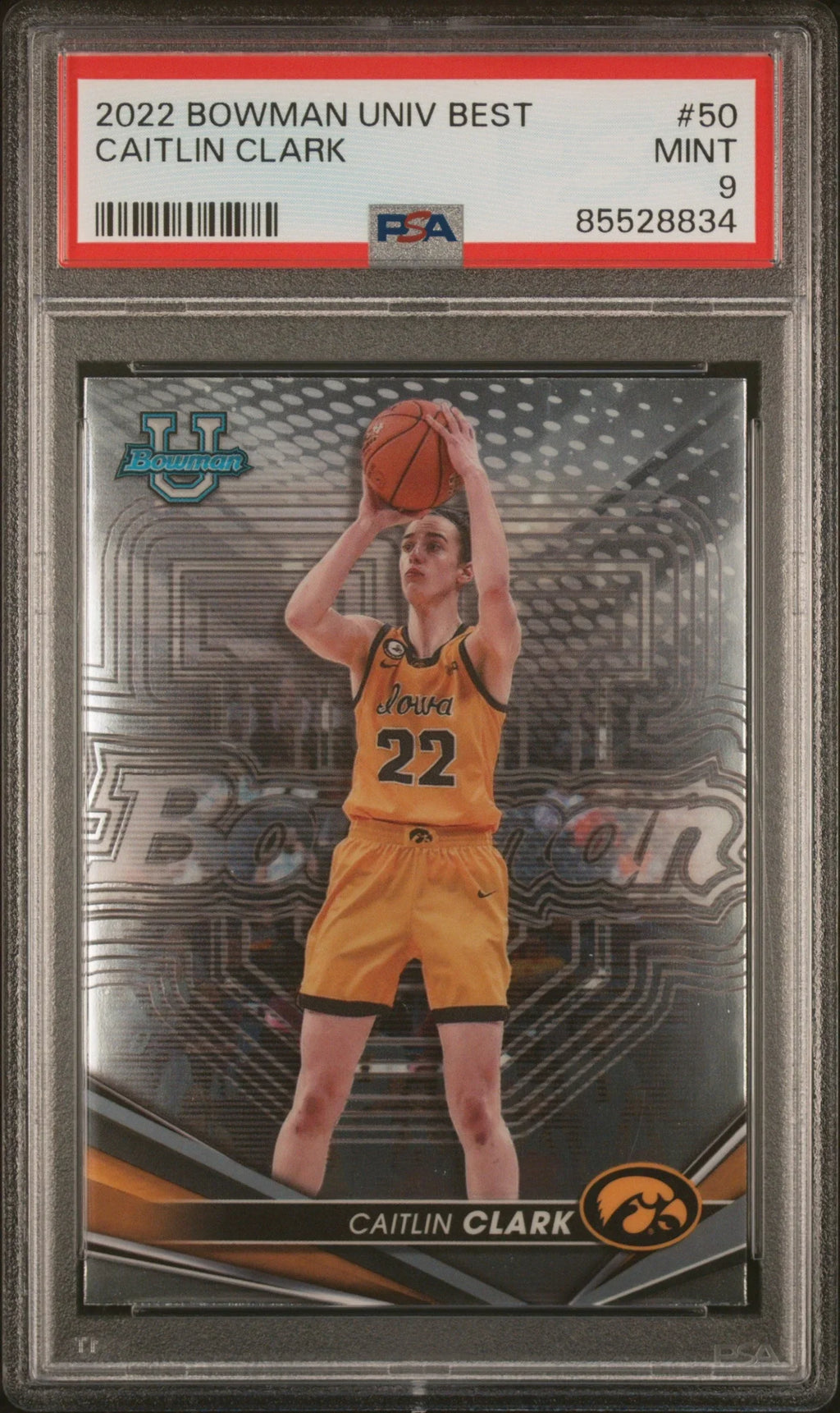 Graded 2022 Topps Bowman University Best Caitlin Clark #50 Rookie RC Basketball Card PSA 9 Mint