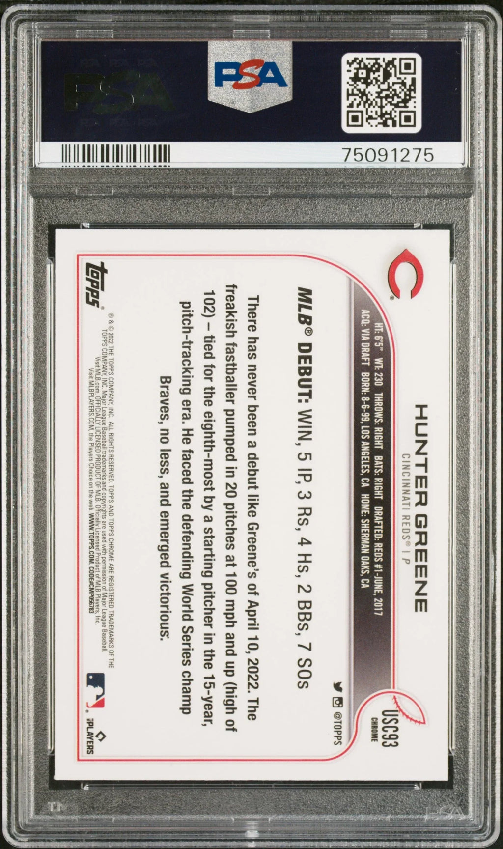 Graded 2022 Topps Chrome Update Hunter Greene #USC93 Rookie RC Baseball Card PSA 10 Gem Mint
