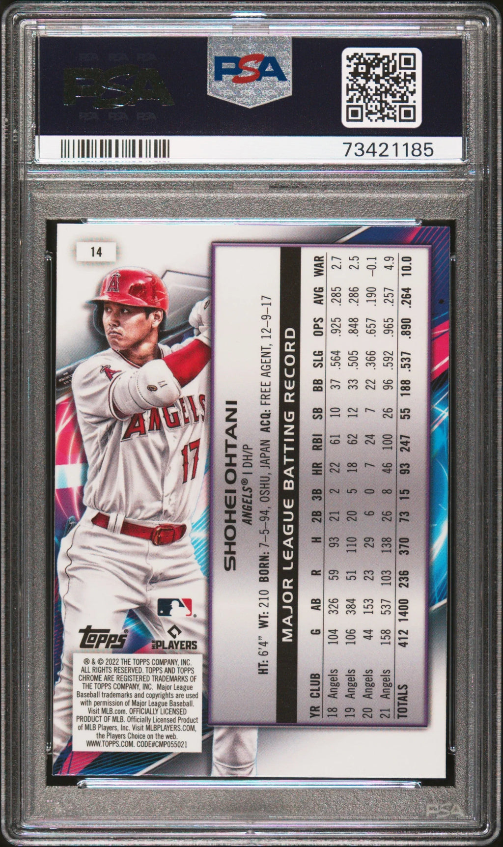 Graded 2022 Topps Cosmic Chrome Shohei Ohtani #14 Baseball Card PSA 10 Gem Mint