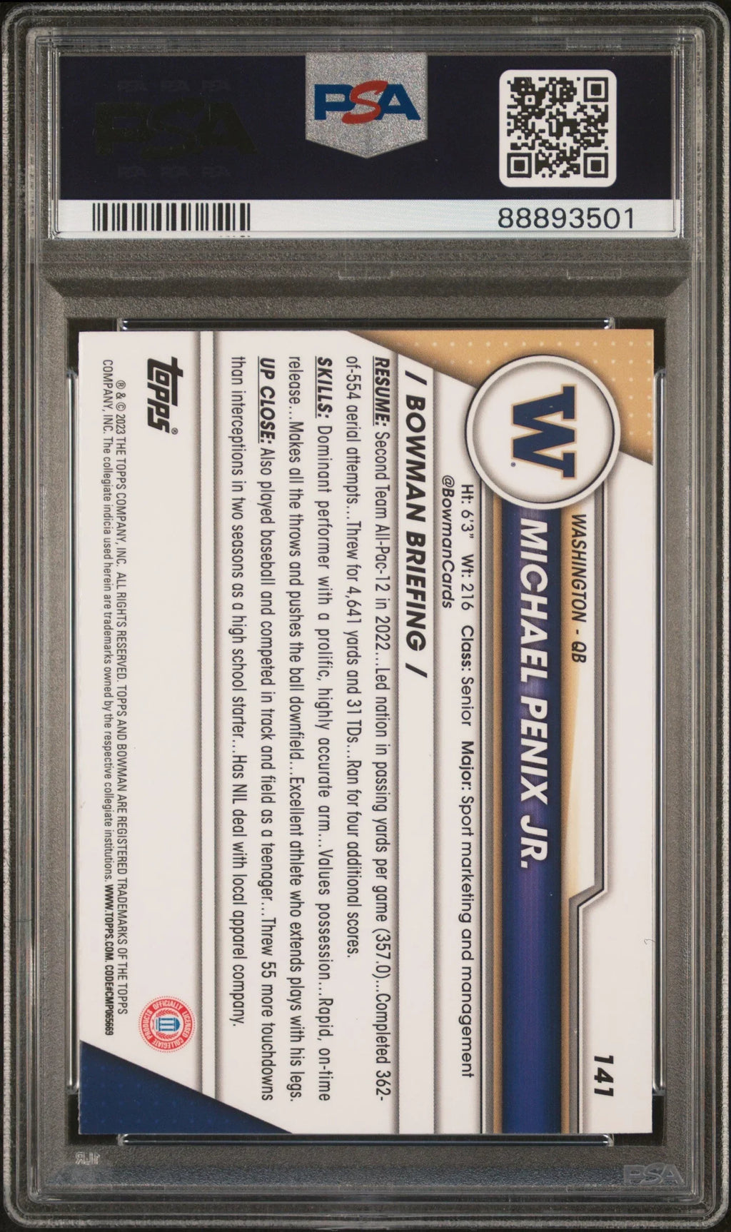 Graded 2023 Bowman U Chrome Michael Penix Jr. #141 Xfractor Rookie RC Football Card PSA 10 Gem Mint