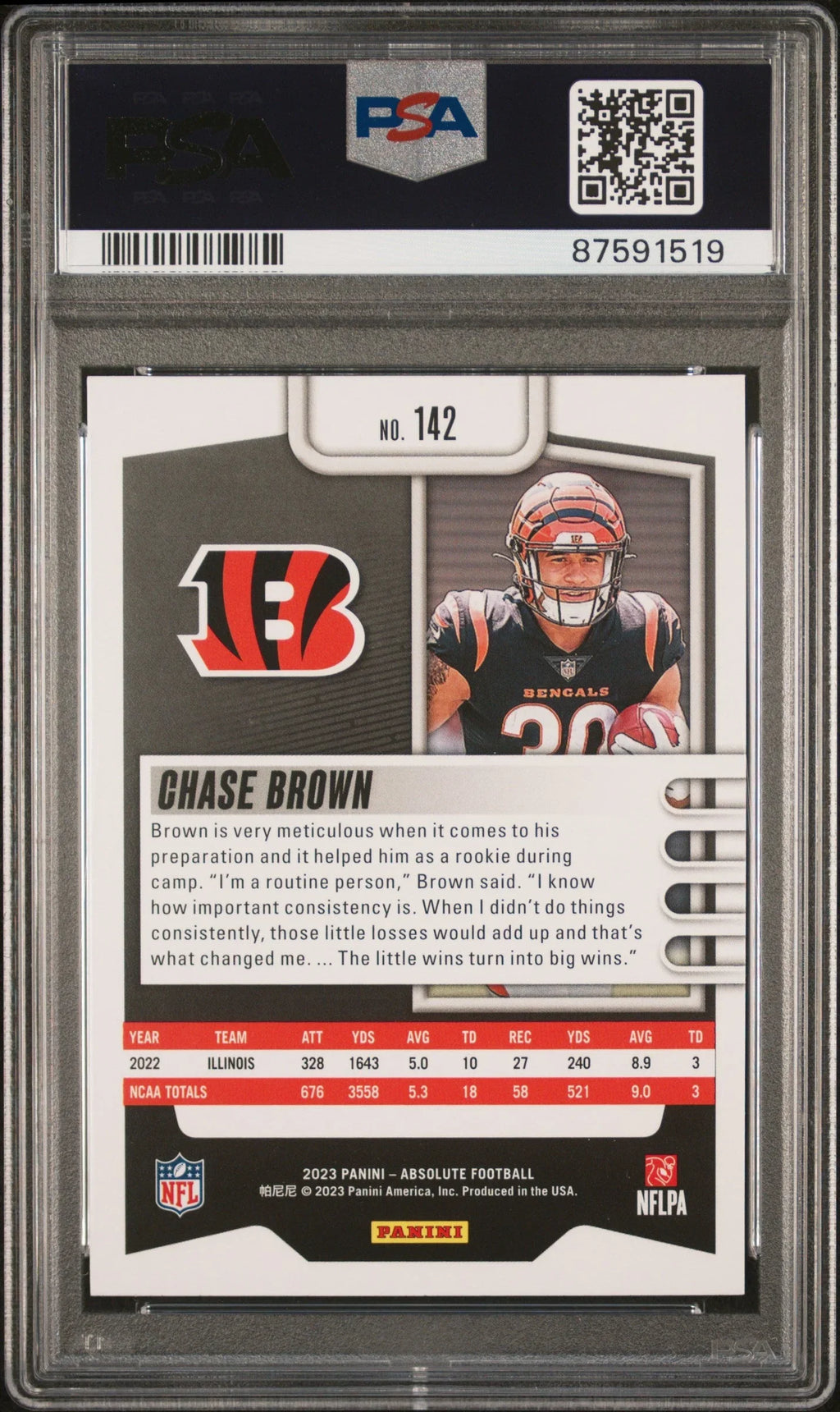 Graded 2023 Panini Absolute Chase Brown #142 Rookie RC Football Card PSA 10 Gem Mint