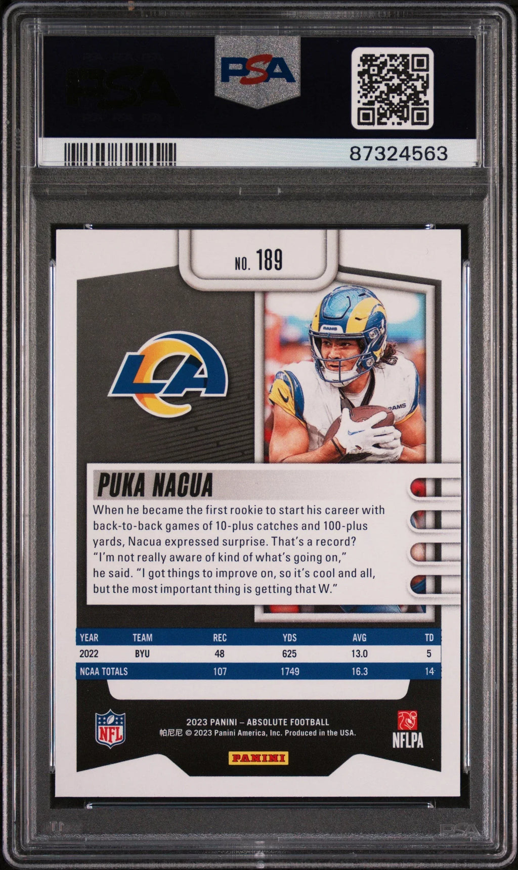 Graded 2023 Panini Absolute Puka Nacua #189 Rookie RC Football Card PSA 10 Gem Mint