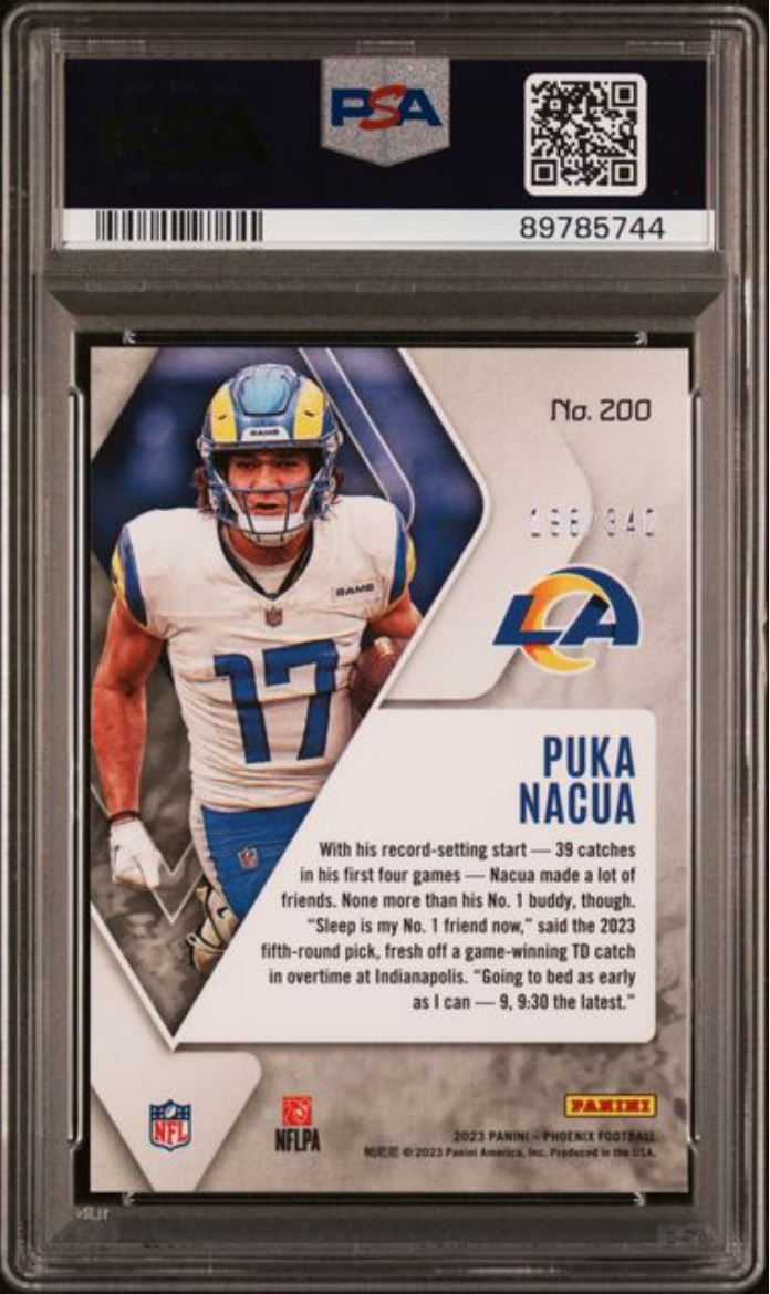 Graded 2023 Panini Phoenix Puka Nacua #200 Fire Burst /340 Rookie RC Football Card PSA 10 Gem Mint