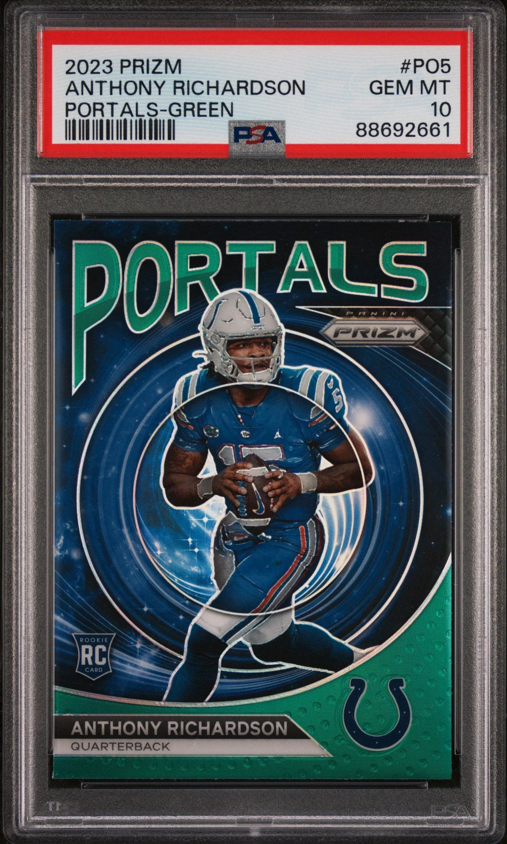Graded 2023 Panini Prizm Anthony Richardson #PO5 Portals Green Rookie RC Football Card PSA 10 Gem Mint