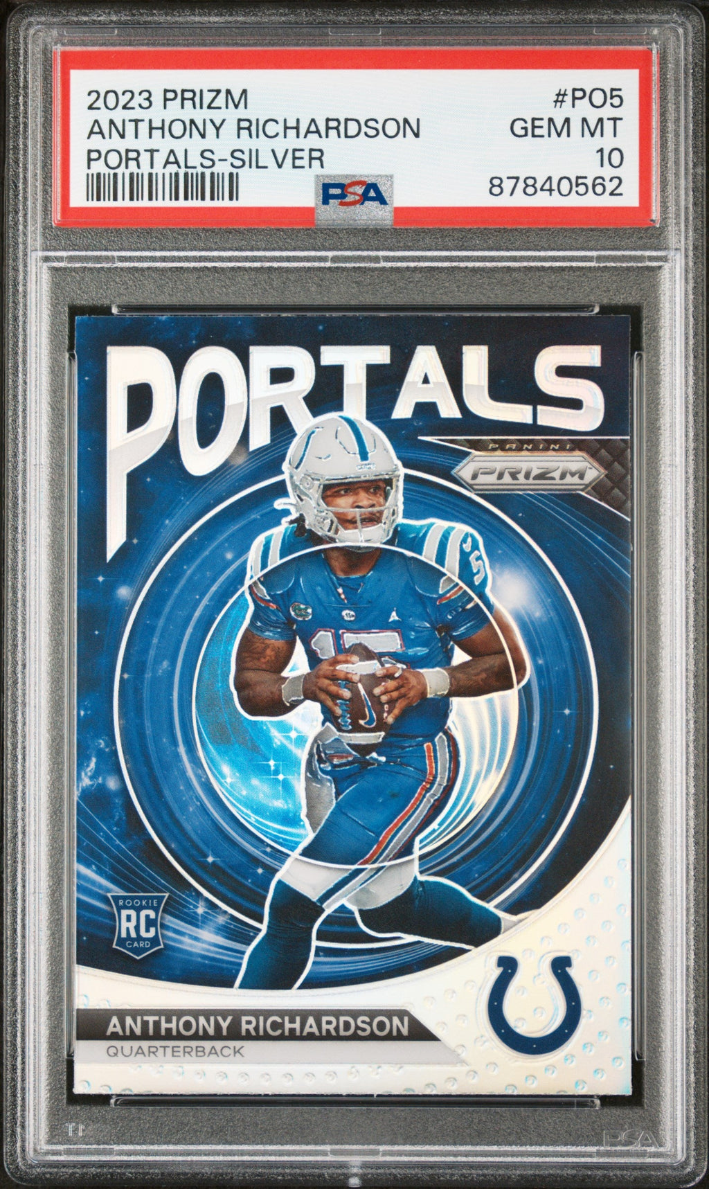 Graded 2023 Panini Prizm Anthony Richardson #PO5 Portals Silver Rookie RC Football Card PSA 10 Gem Mint