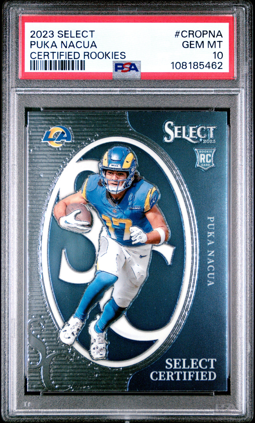 Graded 2023 Panini Select Puka Nacua #CROPNA Certified Rookies Rookie RC Football Card PSA 10 Gem Mint