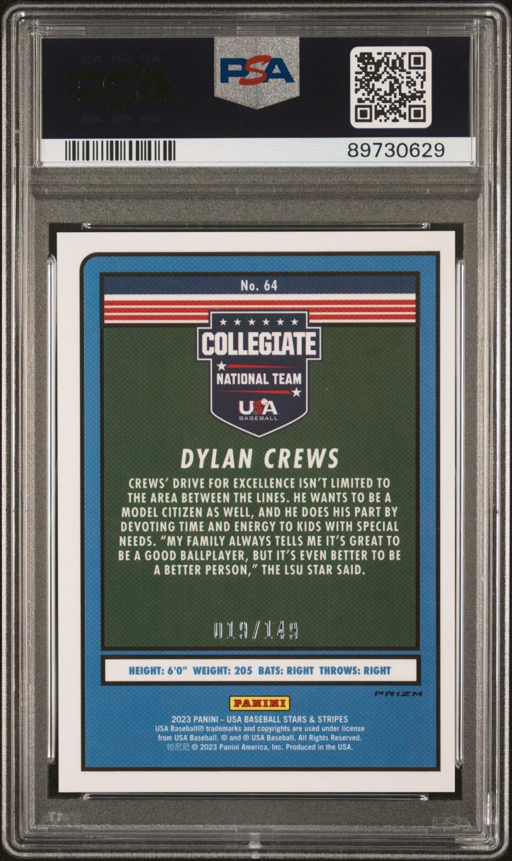 Graded 2023 Panini Stars & Stripes USA Dylan Crews #64 Red #/149 Rookie RC Baseball Card PSA 10 Gem Mint
