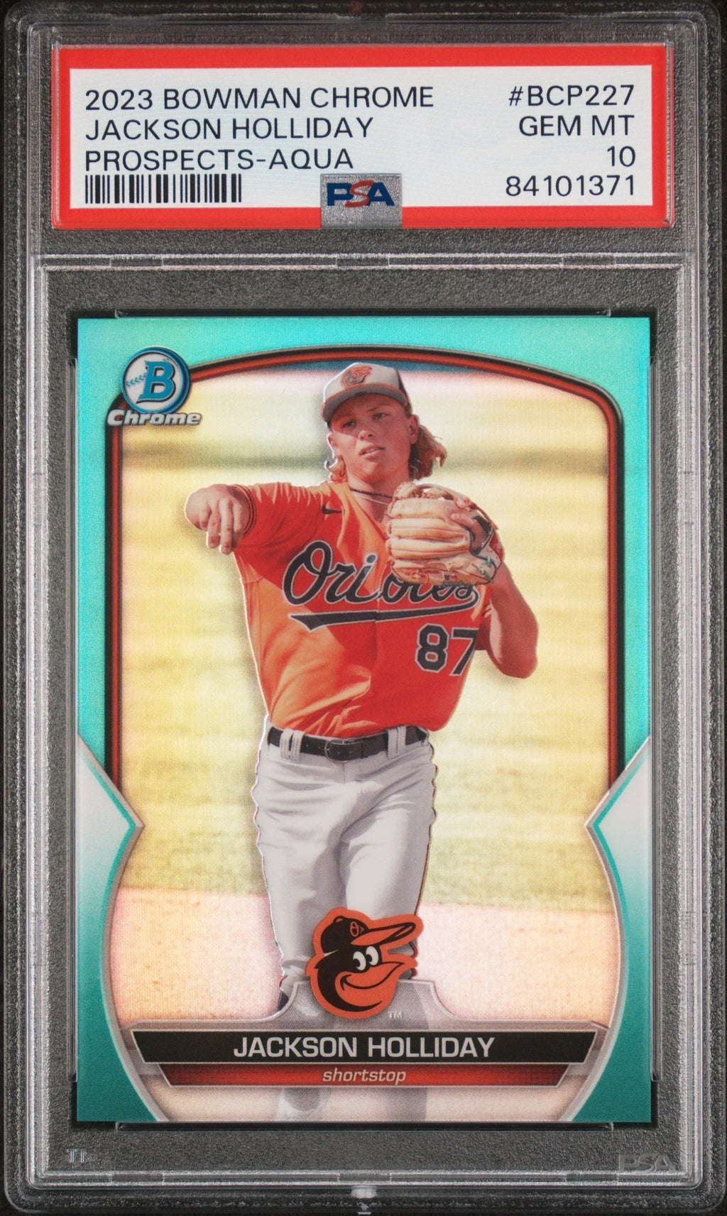 Graded 2023 Topps Bowman Chrome Jackson Holliday #BCP227 Prospects Aqua #/125 Rookie RC Baseball Card PSA 10 Gem Mint