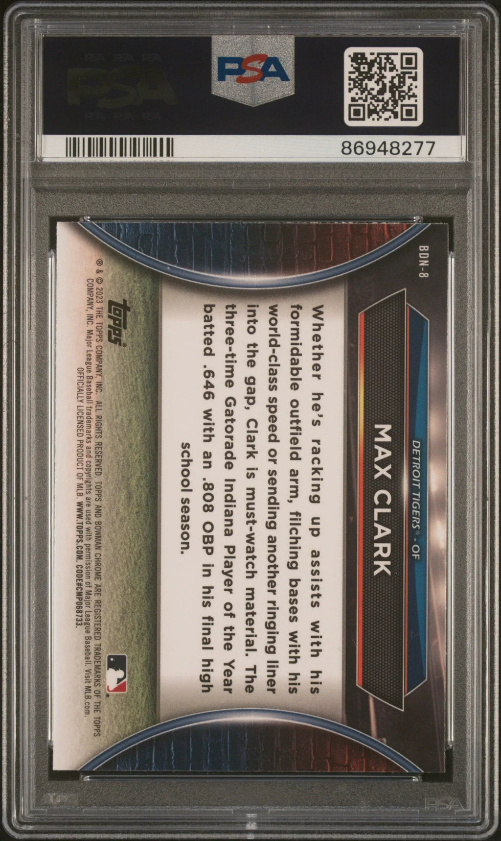 Graded 2023 Topps Bowman Draft Max Clark #BDN8 Draft Night Rookie RC Baseball Card PSA 10 Gem Mint