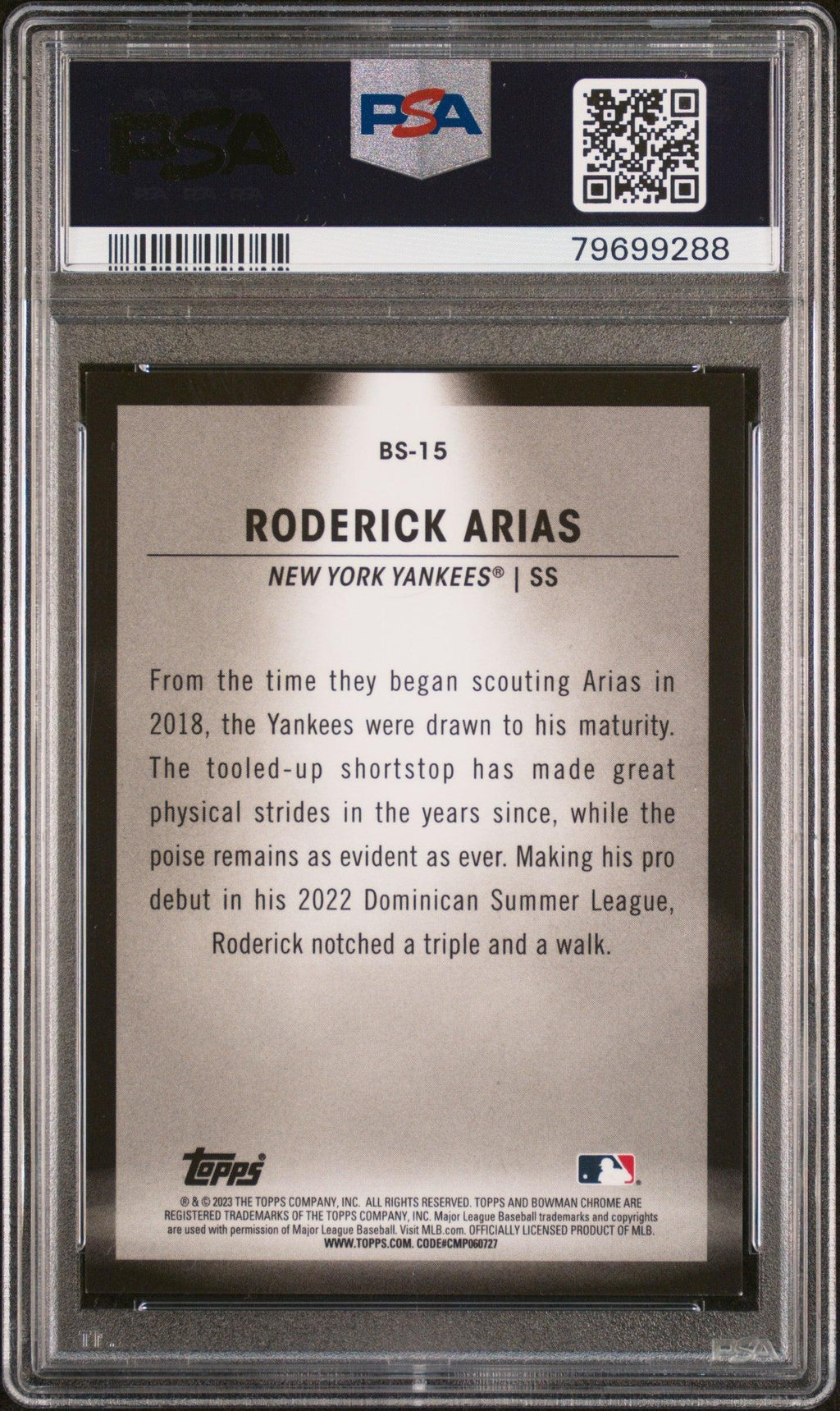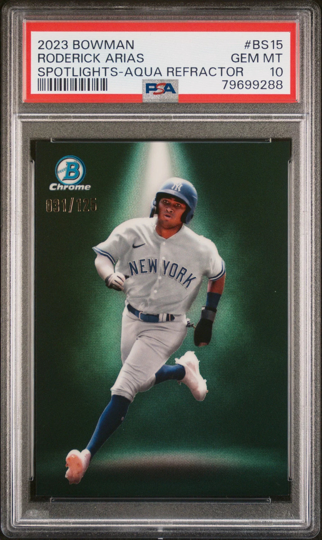 Graded 2023 Topps Bowman Roderick Arias #BS15 Spotlights Aqua Refractor #/125 Rookie RC Baseball Card PSA 10 Gem Mint