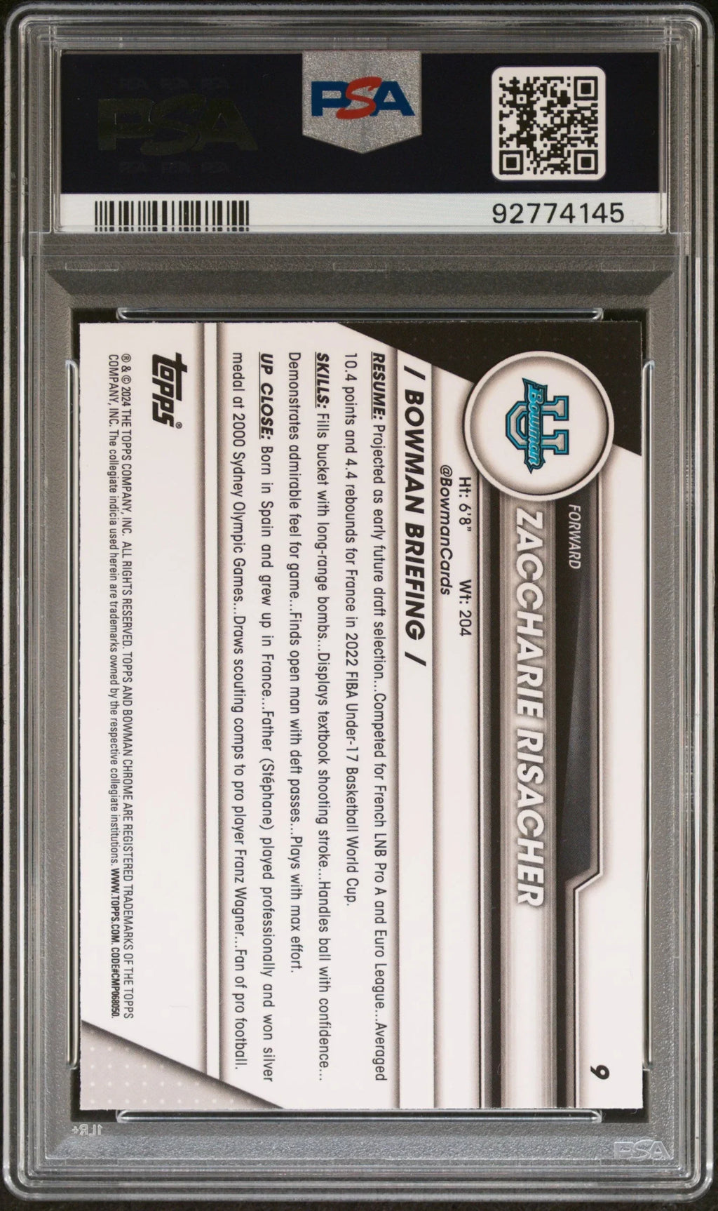 Graded 2023 Topps Bowman U Sapphire Zaccharie Risacher #9 Rookie RC Basketball Card PSA 10 Gem Mint