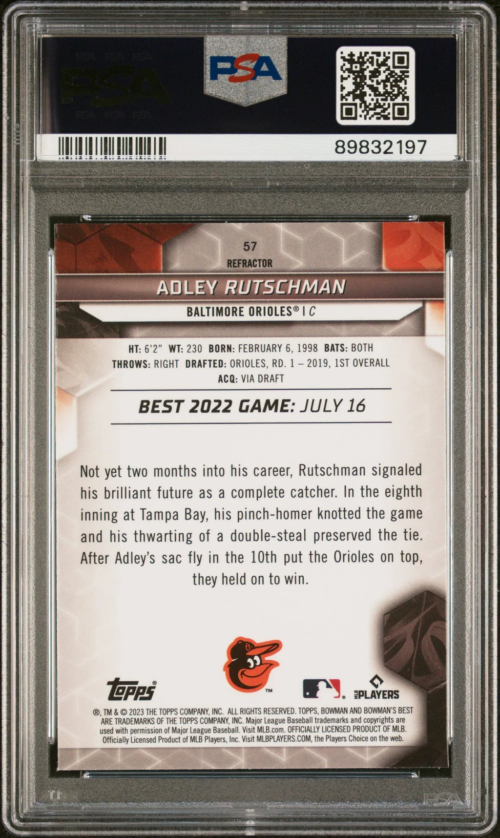 Graded 2023 Topps Bowmans Best Adley Rutschman #57 Refractor Rookie RC Baseball Card PSA 10 Gem Mint