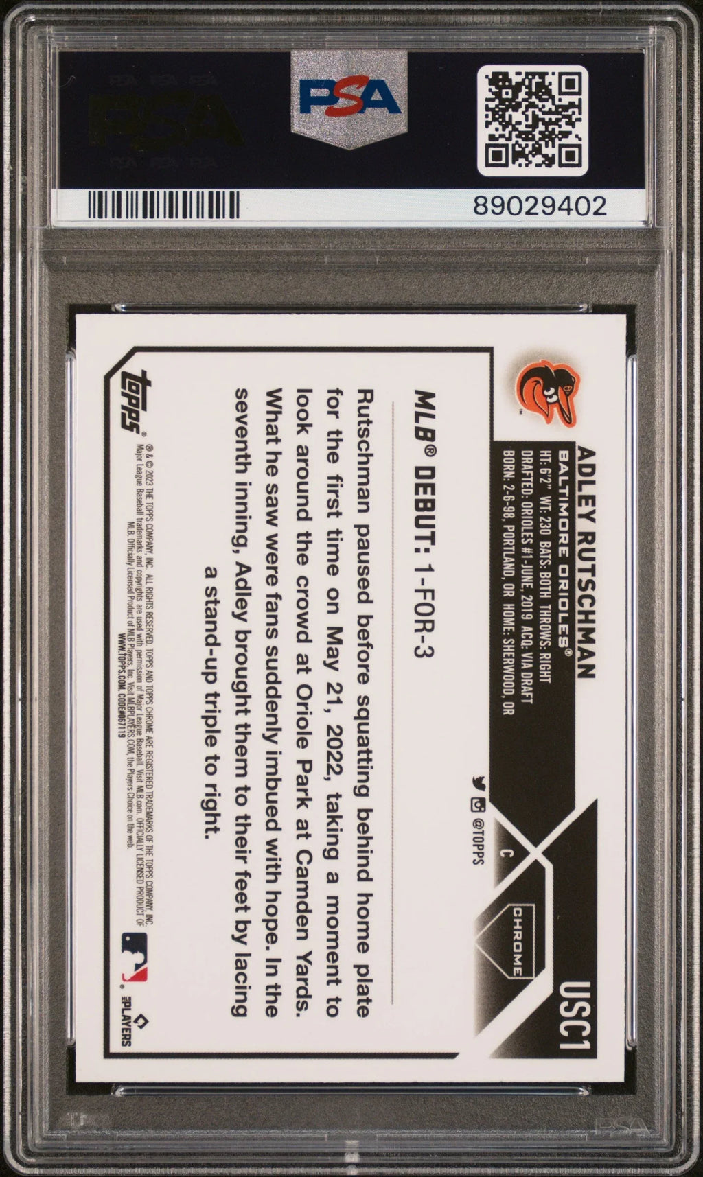 Graded 2023 Topps Chrome Update Adley Rutschman #USC1 Pink Rookie RC Baseball Card PSA 10 Gem Mint