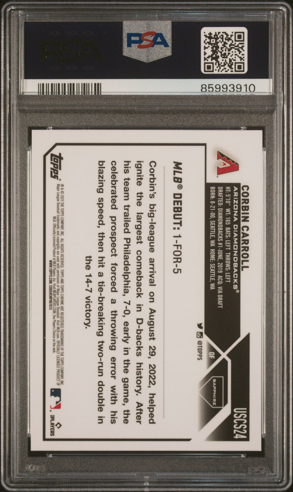 Graded 2023 Topps Chrome Update Sapphire Edition Corbin Carroll #24 Rookie RC Baseball Card PSA 10 Gem Mint