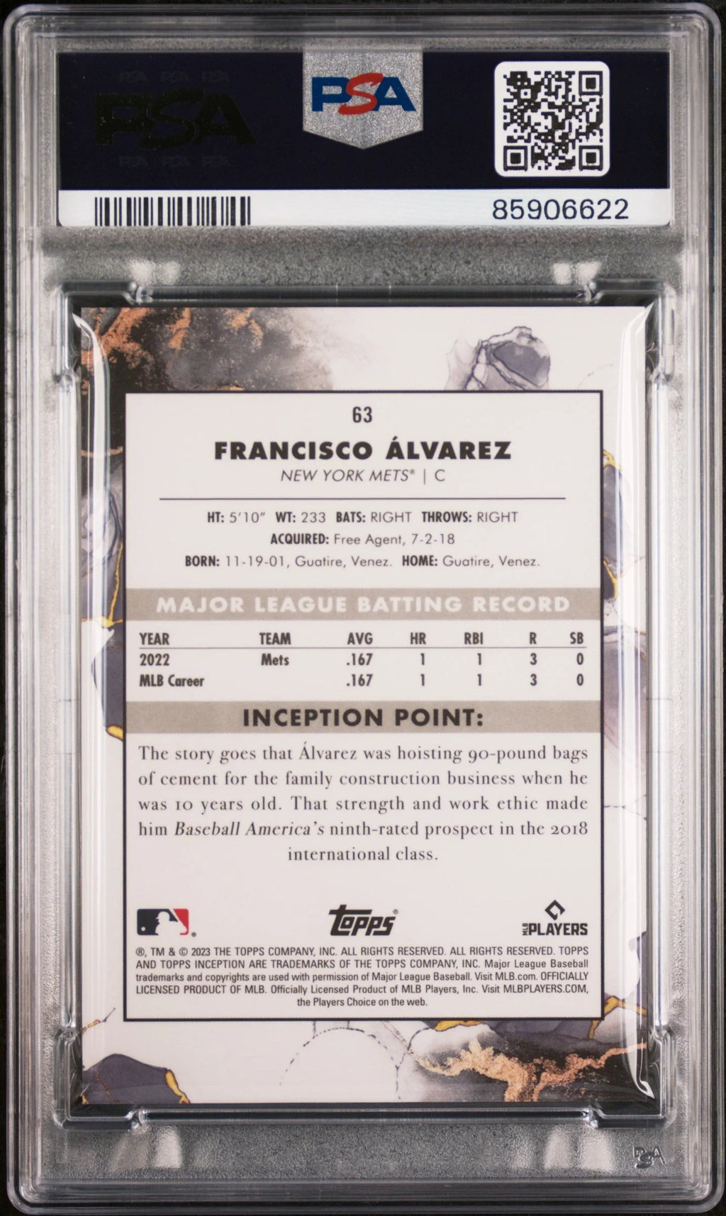 Graded 2023 Topps Inception Francisco Alvarez #63 Rookie RC Baseball Card PSA 10 Gem Mint