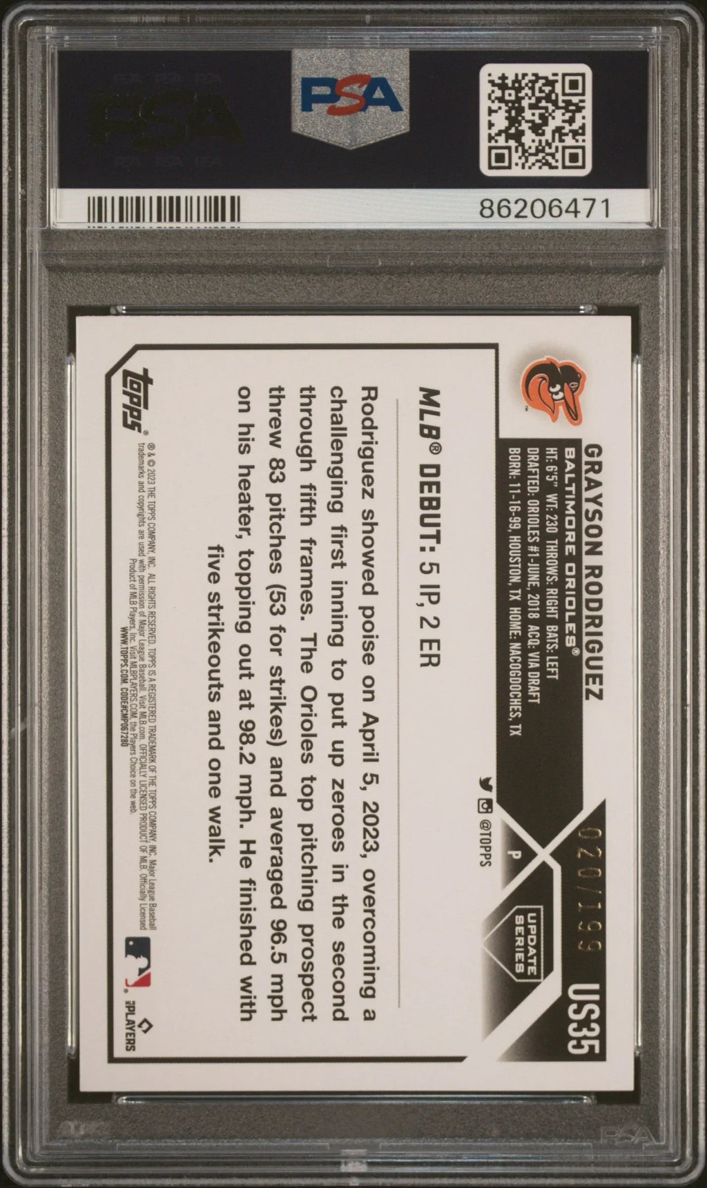 Graded 2023 Topps Update Grayson Rodriguez #US35 Red Foil #/199 Rookie RC Baseball Card PSA 10 Gem Mint