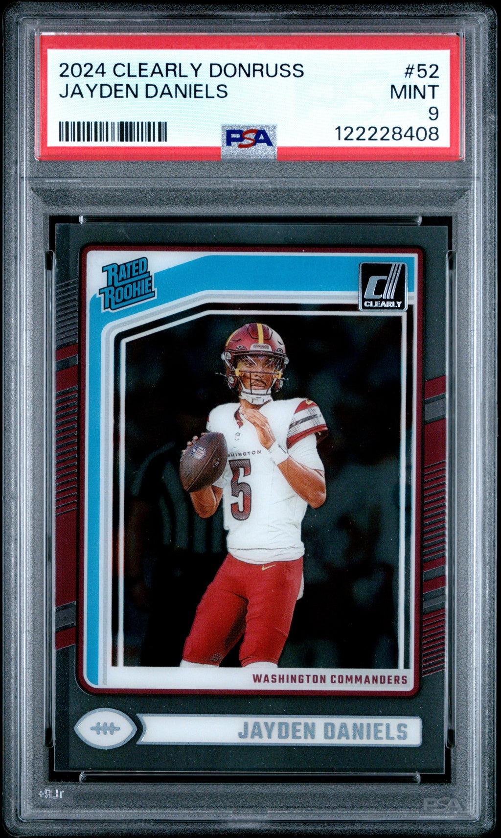 Graded 2024 Panini Clearly Donruss Jayden Daniels #52 Rookie RC Football Card PSA 9 Mint