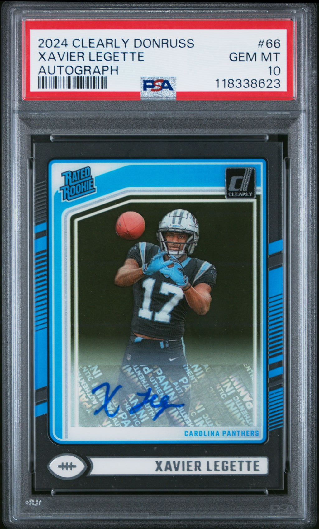 Graded 2024 Panini Clearly Donruss Xavier Legette #66 Autograph Rookie RC Football Card PSA 10 Gem Mint