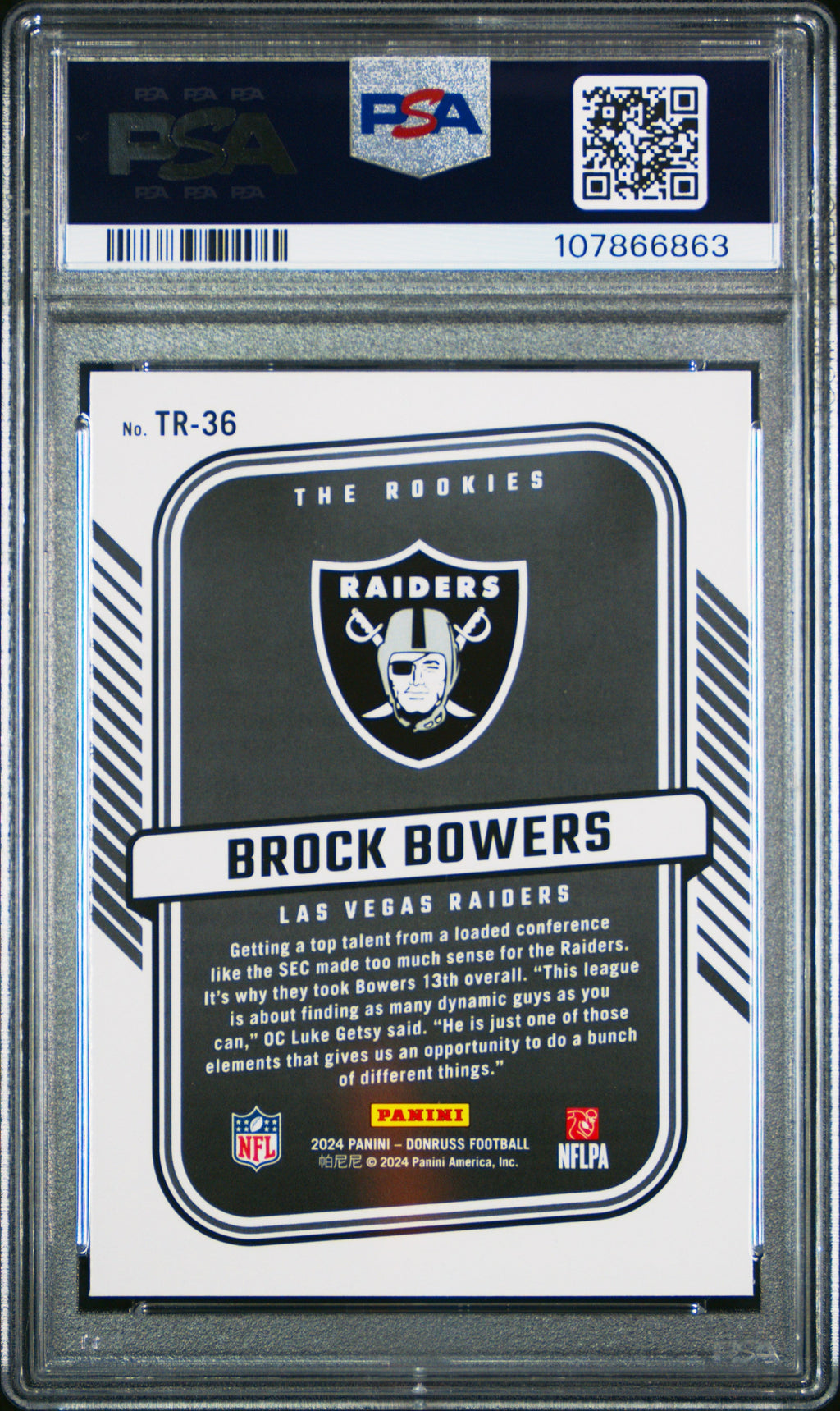 Graded 2024 Panini Donruss Brock Bowers #TR36 The Rookies Rookie RC Football Card PSA 10 Gem Mint